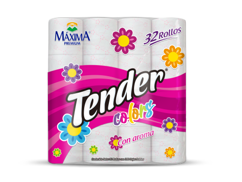 Paquete de 4 rollos de papel higiénico de 400 hojas dobles. Resistente y colorido gracias a su exclusiva textura. Con agradable aroma.